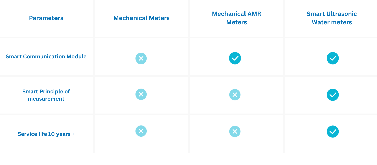 Smart Ultrasonic Water Meters are next generation water meters which are much more advanced and superior than traditional Mechanical and Mechanical AMR Meters.